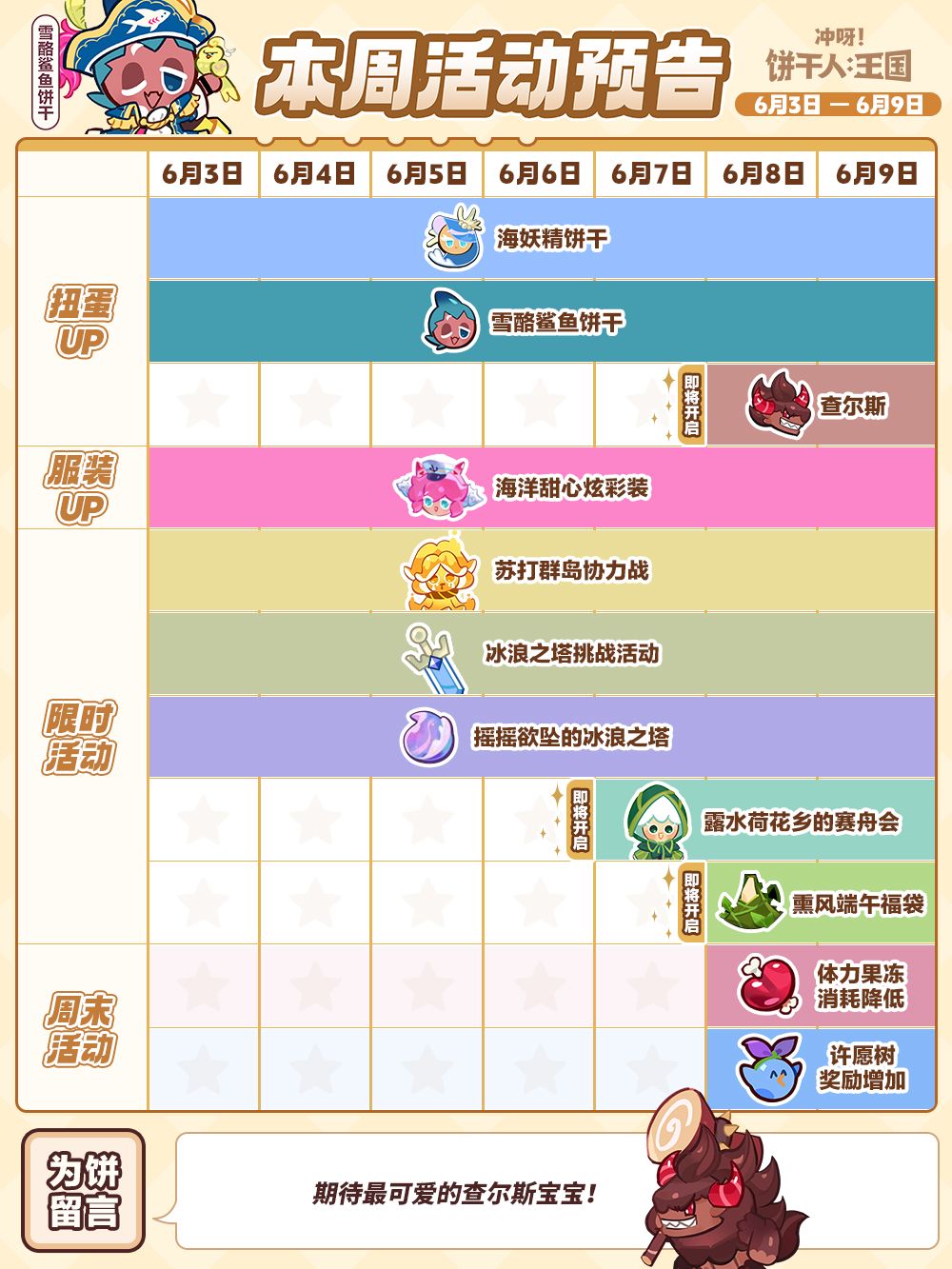 查尔……哦不!奶油狼兽,即将挥舞着他的锤子开启扭蛋UP;端午特别活动也即将开启,大家千万不要错过! 要记得为你喜欢的饼应援哦~