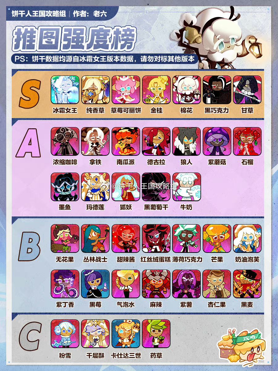 冰霜版本的推图强度榜,T0新增冰霜女王和棉花,女王有着高伤害和硬控制,棉花则是集回复+控制(虽然只有冲撞的那一下)+抗伤和后续作战成为T0。 要注意的是,在面对部分boss时冻结是无效的,比如8-30,但是面对部分boss时有效,比如9-30的可丽饼