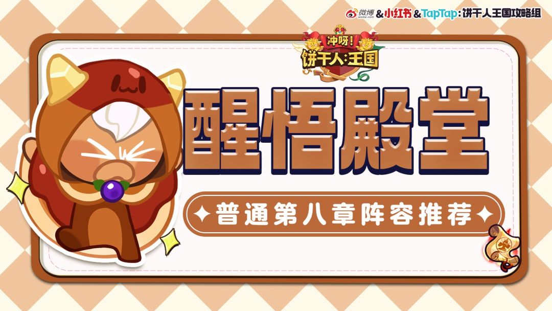 各位勇士大家好呀,随着冒险的推进,我们面对主线第八章-醒悟殿堂是迟早的事了,糖纸本期为大家带来的是第八章-醒悟殿堂-普通难度的阵容推荐。勇士们一起进来交流吧! 醒悟殿堂 当我们推进到本章时,饼干阵容已经成型,都有超级稀有级别的饼干,本期推荐以超级稀有为主来为大家推荐通关阵容,供大家参考。 本期阵容推荐适用于第八章所有地图,队伍均由超级稀有饼干构成。 配队思路按照1治疗2输出2前排进行搭配。队伍中至