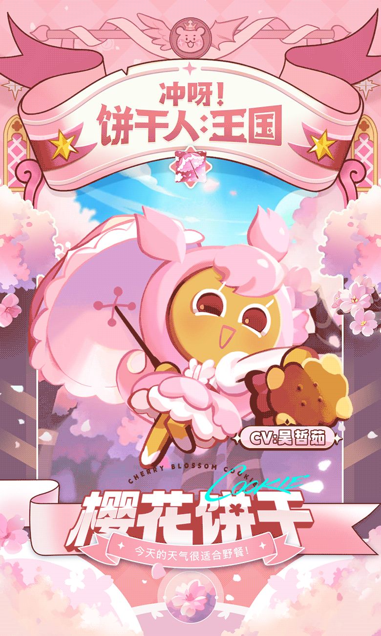 CV:吴哲茹 战斗类型:奇袭型 作战位置:后排 「今天的天气很适合野餐!」 将春天第一片粉红樱花落瓣收集起来,长期蒸馏萃取出的精华放入面团,由此烘烤出的饼干就是樱花饼干。据说在天气好的时候出来踏青,就有机会能看见他一边哼歌,一边撑着小伞准备乘风飞翔的模样。可别觉得他奇怪,当他跑来递上三明治跟茶请你享用时,绝对可爱到无法抵挡。一旦打开他的话匣子,小心聊到天黑都停不下来喔~ (樱花饼干是一块优雅又活泼