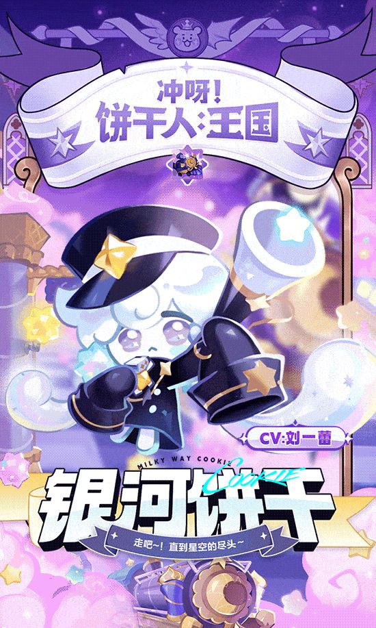 「走吧~!直到星空的尽头~」 品阶:超级稀有 战斗类型:突击型 作战位置:前排 CV:刘一蕾 每一颗星星都乘载着一个愿望...但又有谁知道在夜空中听饼干们倾吐的星星们,也会做着它们自己的梦呢?用如梦似幻的银河星粉加上朦胧月光所制成的银河饼干,是专为沉睡月亮工作的特别列车长。因崭新的梦而发光的银河饼干,每天都会用星星糖绑好散落的头发,接着换上制服、压下帽子,准备上工!只要银河饼干高声大喊「噗噗!列车