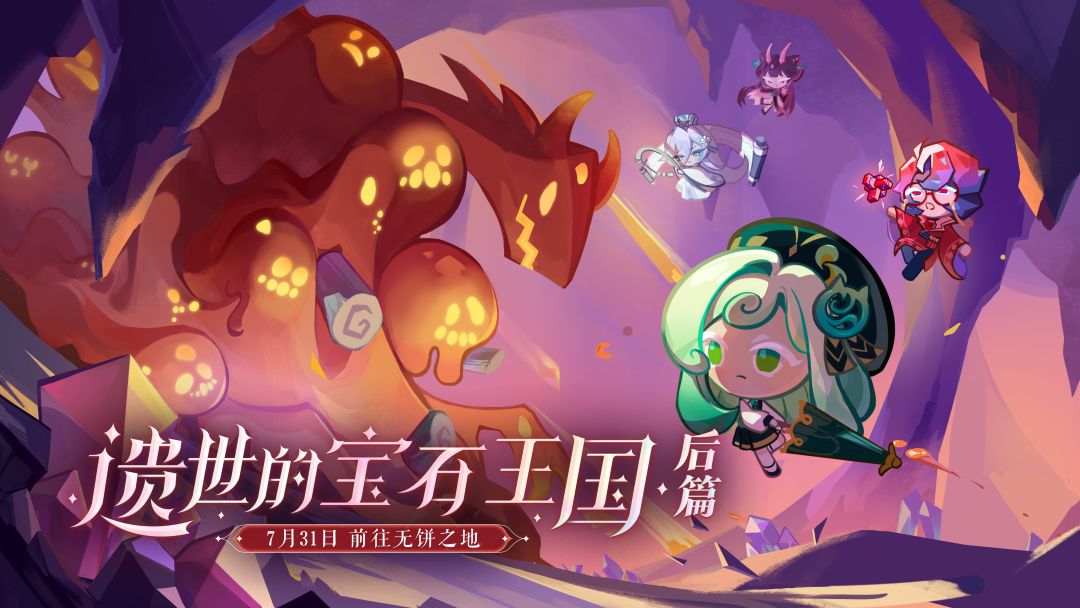 与各色璀璨的饼干相识,展开新的篇章吧! 全新版本「遗世的宝石王国·上篇」将于7月3日开启!全新奇袭型「传奇」白离饼干、支援型「超级稀有」月光石饼干闪耀亮相! 暑期庆典限定福利海量放送,助力每一位饼干朋友无缝踏上新冒险!金桂饼干着新装归来,展开「遗世的宝石王国」特别篇章!更有首领挑战赛打响,期待与你共赴狂欢~