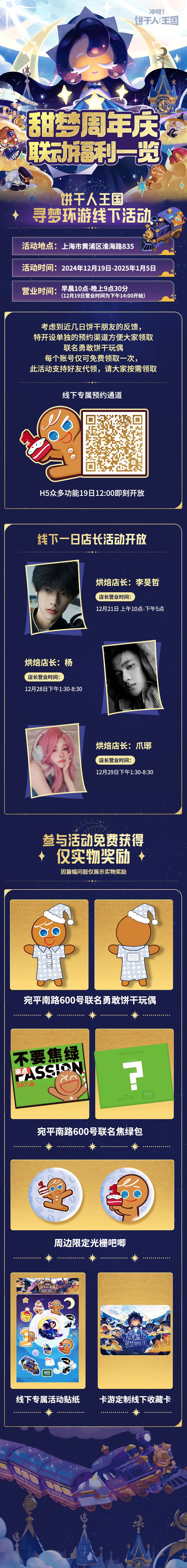 前方梦之列车即将抵达站点——过去几天,诸多联动情报、福利接踵而至,在这里为大家汇总了详细的联动内容,循着此篇,将信息尽收眼底! 特别提醒: 饼干人王国x「宛平南路600号」联合发起的「寻梦环游1周年」,线下正式开放的时间为12月19日(明日)下午14:00 12月20~1月5日营业时间为上午10:00-晚上9:30 12月21日、12月28日、12月29日还将会有一日烘焙店长来到现场,请各位饼干朋