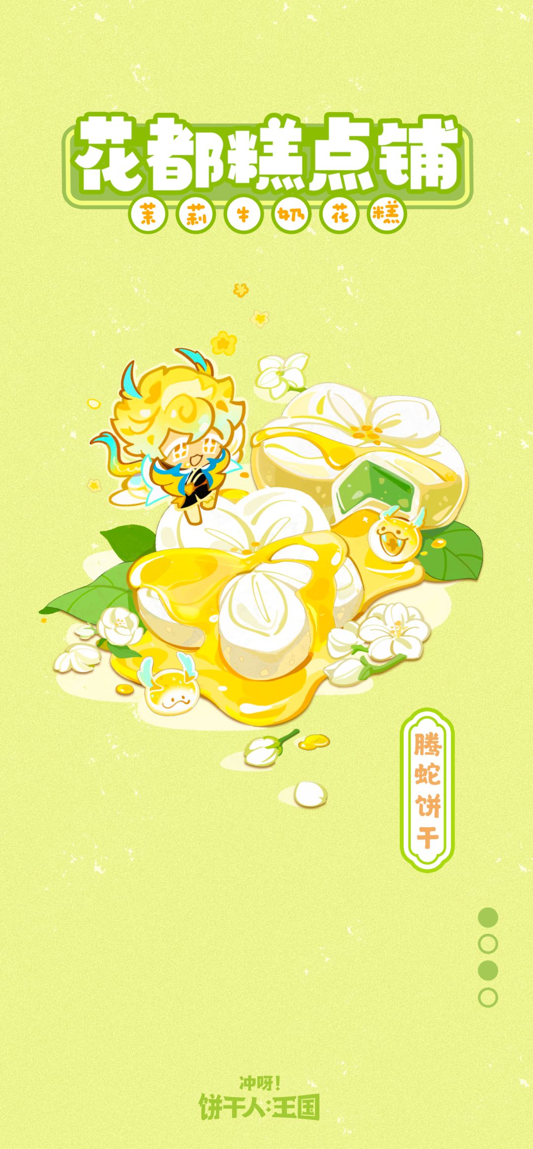 ✦今日上新:「茉莉牛奶花糕」 为了迎接腾蛇饼干的苏醒,花都糕点铺限时营业中!每天将会上新不同的糕点,伴随特别的插画连续放送! 「特制的花糕里加了很多有益的原料,多吃花糕就能快快长高……」
