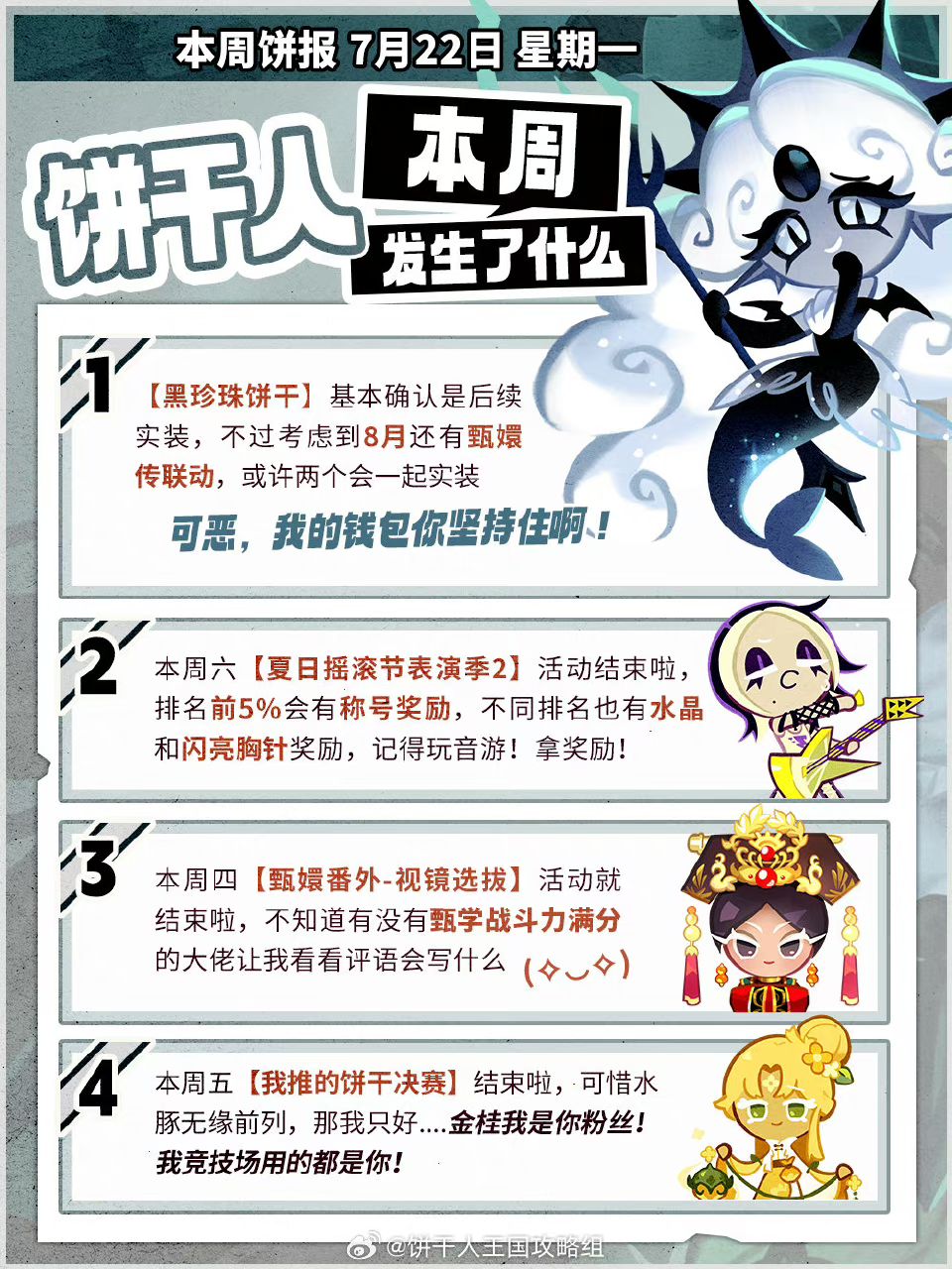 本周饼报,黑珍珠下周上线,本周会有一大批活动结束,大家记得做活动领奖励