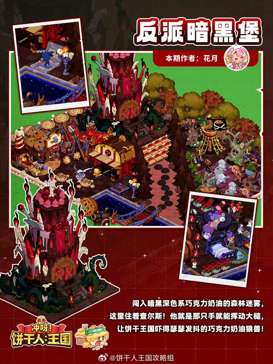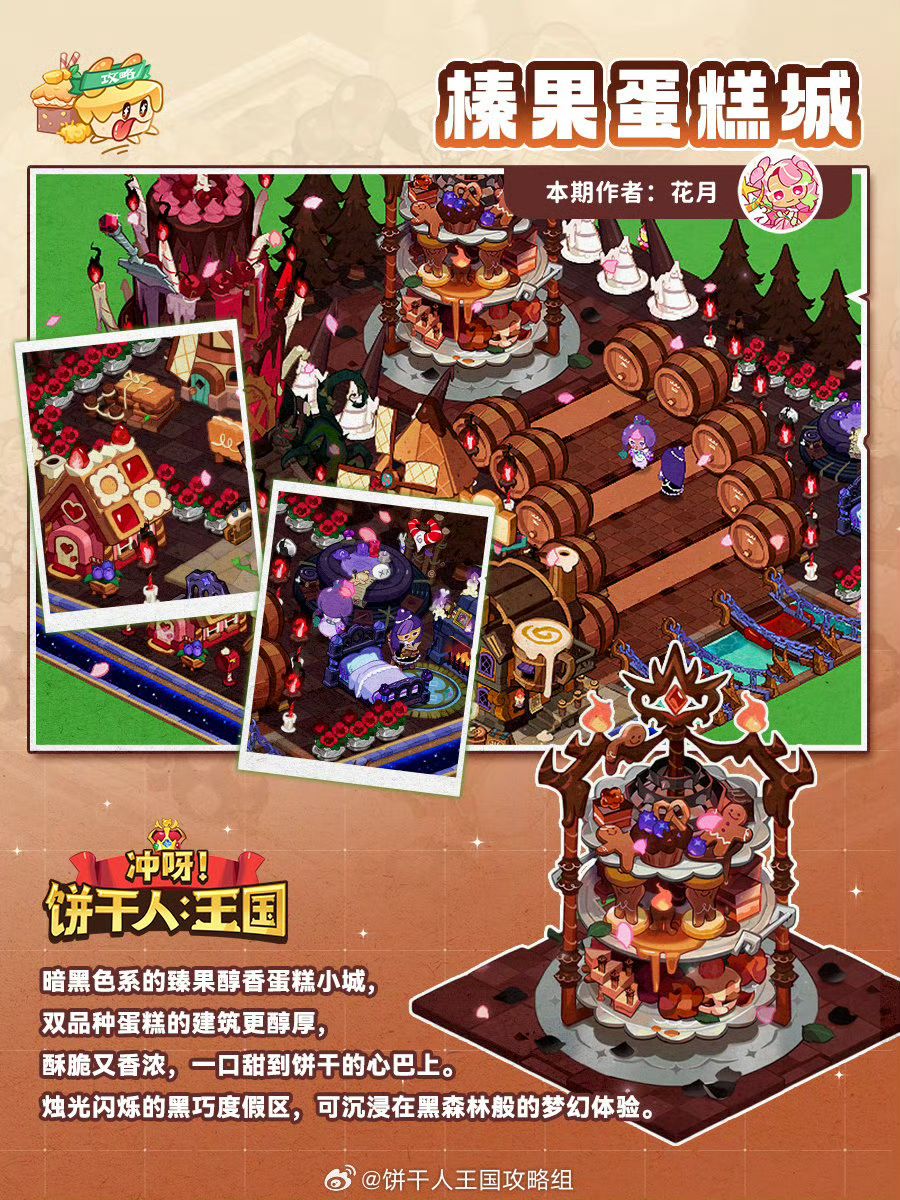 暗黑色系的臻果醇香蛋糕小城,双品种蛋糕的建筑更醇厚,酥脆又香浓,一口甜到饼干的心巴上。烛光闪烁的黑巧度假区,可沉浸在黑森林般的梦幻体验。 作者@花月沾衣 设计@不柿本人KAKI