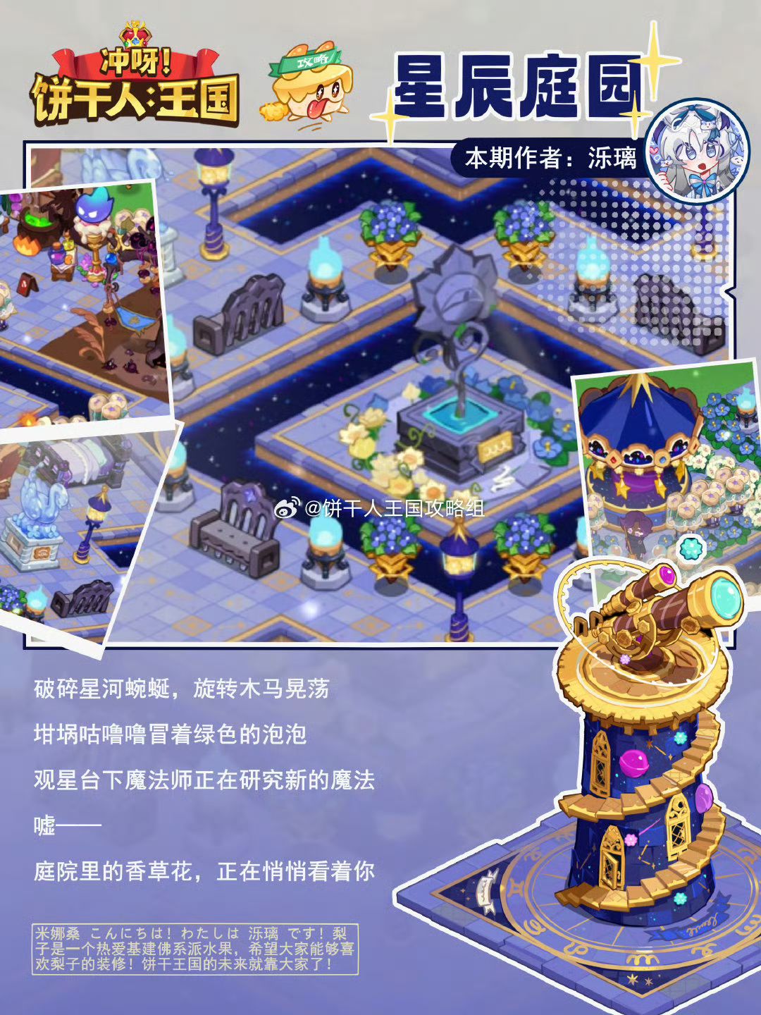 破碎星河蜿蜒,旋转木马晃荡 坩埚咕噜噜冒着绿色的泡泡 观星台下魔法师正在研究新的魔法 嘘—— 庭院里的香草花,正在悄悄看着你 作者:泺璃 设计:羽伞