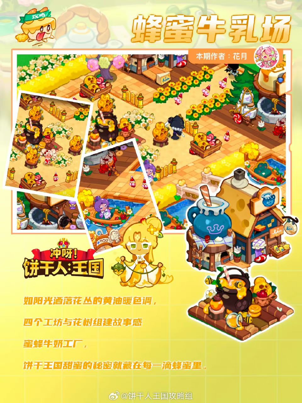 如阳光洒落花丛的黄油暖色调,四个工坊与花树组建故事感蜜蜂牛奶工厂,饼干王国甜蜜的秘密就藏在每一滴蜂蜜里 作者@花月沾衣 设计@不柿本人KAKI