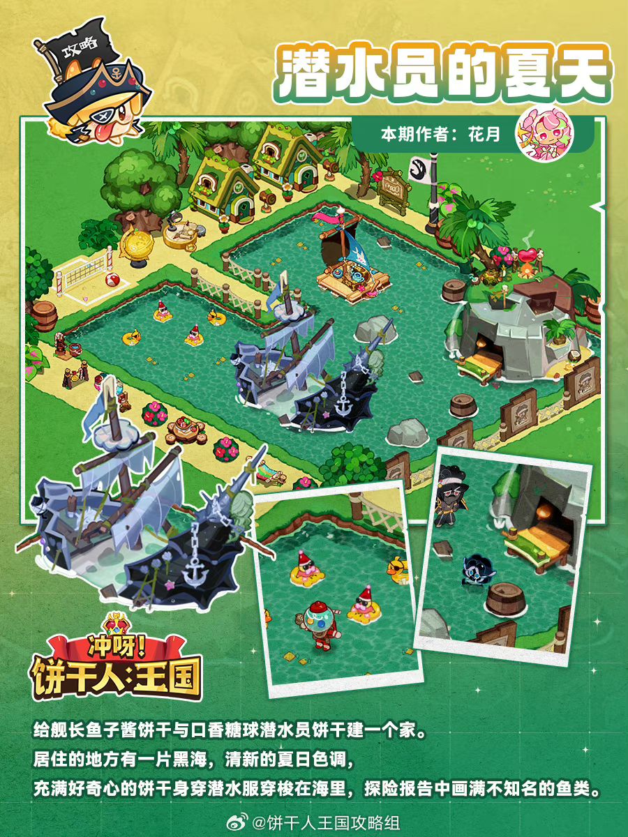 给舰长鱼子酱饼干与口香糖球潜水员饼干建一个家。居住的地方有一片黑海,清新的夏日色调,充满好奇心的饼干身穿潜水服穿梭在海里,探险报告中画满不知名的鱼类 作者@花月沾衣 设计:窝头