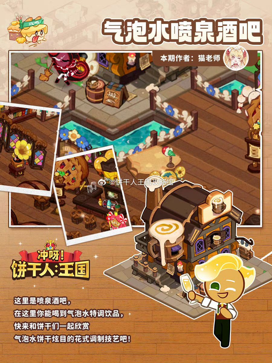 这里是喷泉酒吧,在这里你能喝到气泡水特调饮品,快来和饼干们一起欣赏气泡水饼干炫目的花式调制技艺吧! 作者:猫老师