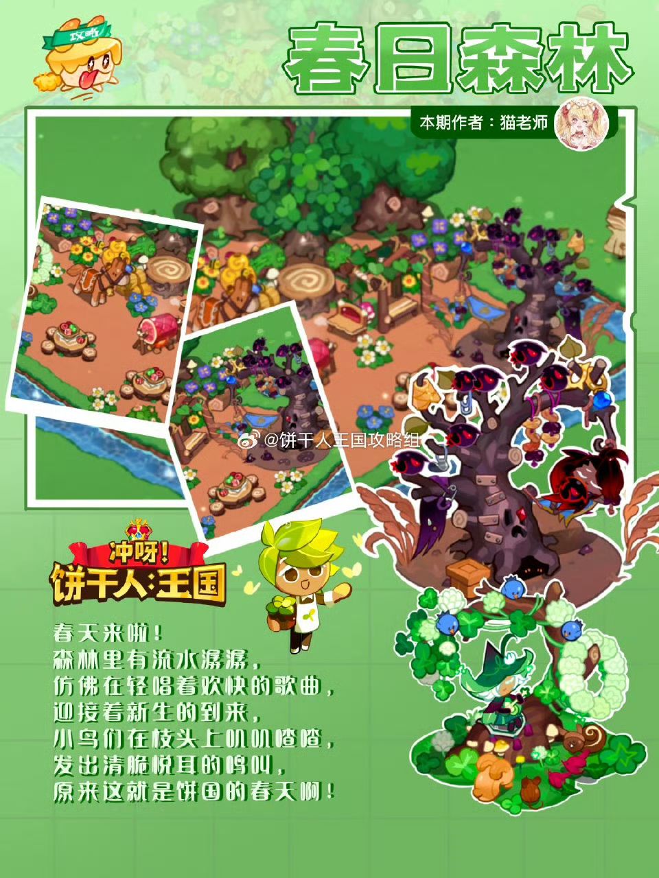 春天来啦!森林里有流水潺潺,仿佛在轻唱着欢快的歌曲,迎接着新生的到来,小鸟们在枝头上叽叽喳喳,发出清脆悦耳的鸣叫,原来这就是饼国的春天啊! 作者:猫老师 设计@不柿本人KAKI