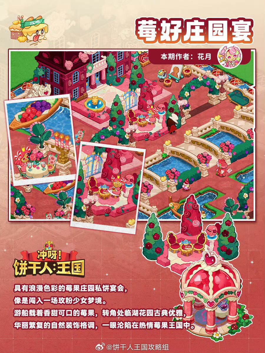 具有浪漫色彩的莓果庄园私饼宴会,像是闯入一场玫粉少女梦境。游船载着香甜可口的莓果,转角处临湖花园古典优雅,华丽繁复的自然装饰格调,一眼沦陷在热情莓果王国中。 作者@花月沾衣 设计@不柿本人KAKI