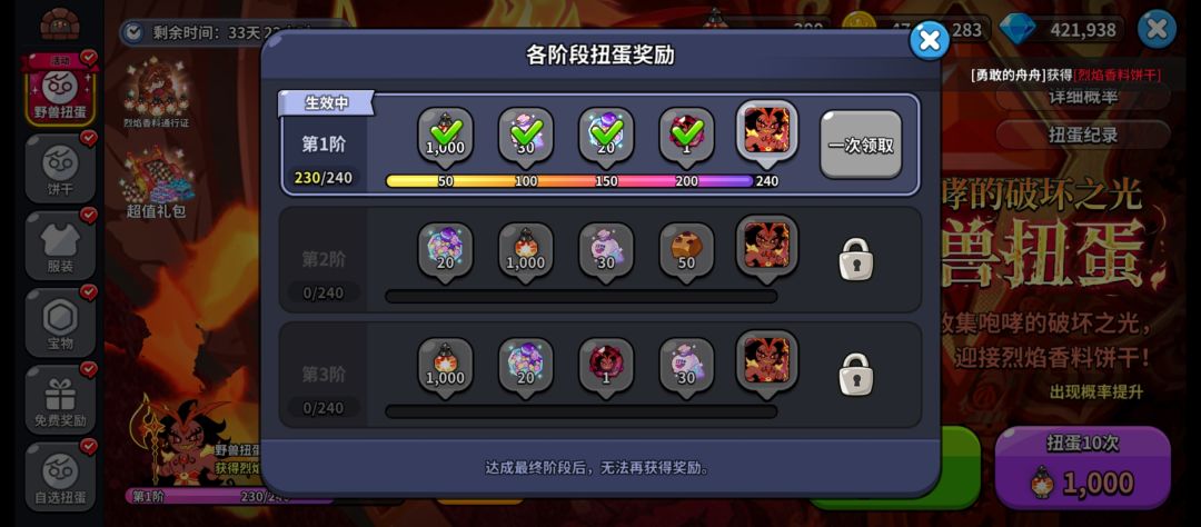 气薯了。 ✦技能特性(解锁魔法糖后) 紫薯饼干开启魔法糖后,在进入战斗时会获得「狂战士的愤怒」增益效果,该效果叠加到一定程度时,紫薯饼干会转换为「狂战士的忍耐」在短时间内恢复一定的生命值。 当紫薯饼干魔法糖等级达到10级后,「狂战士的愤怒」会额外提供效果减免、「狂战士的忍耐」效果期间会额外获得伤害减免。 ✦关键词条:伤害、自身属性增加 ✦战斗类型:突击型 ✦作战位置:前排 ✦紫薯饼干限时UP即将开