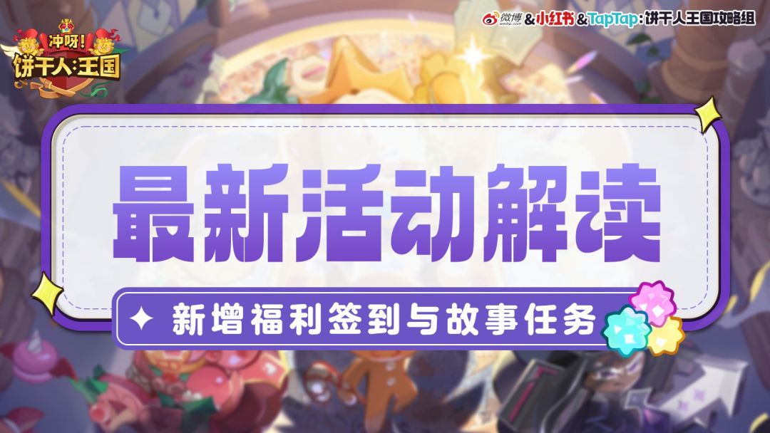 嗨~各位饼干勇士,我是糖纸!作为王国中最爱做各种攻略研究的饼干,我能解答许多问题~今天糖纸送上的是活动解读合集,从而让大家玩转近期活动。 酥脆奇遇签到有礼 每天登录签到,获取游戏道具奖励,高阶饼干,极光材料,帮助更好得体验游戏。 帕菲饼干的故事 帕菲饼干的故事需要根据任务指引,完成下方活动需求,完成阶段任务,解锁故事观看,后续任务以此类推~解锁所有故事,即可获得奖励。 勇敢饼干的勇敢挑战 勇敢饼干