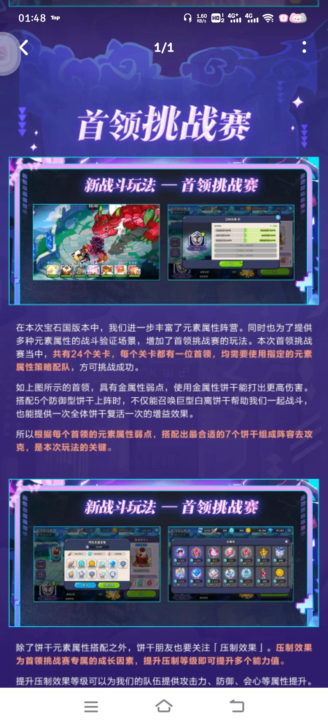 这个活动在国际服叫Boss Rush 活动好打,奖励很多,除了商店兑换以外,会在活动界面有任务奖励拿,相当于一个BOSS是两份奖励的 大致玩法就是通过元素弱点来组配队获得相应元素buff来打BOSS,此活动可以一队上场7个饼干,和之前的百变竞技场一样 事先说明一个BOSS可能需要多张入场票才能打完,而且BOSS是有普通和困难两种难度的,困难难度下的关卡BOSS会有两个甚至三个阶段,每个阶段都会换弱