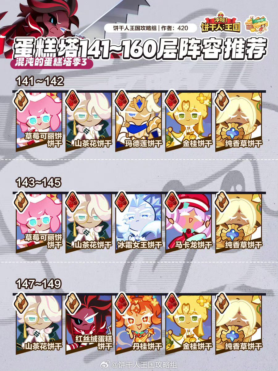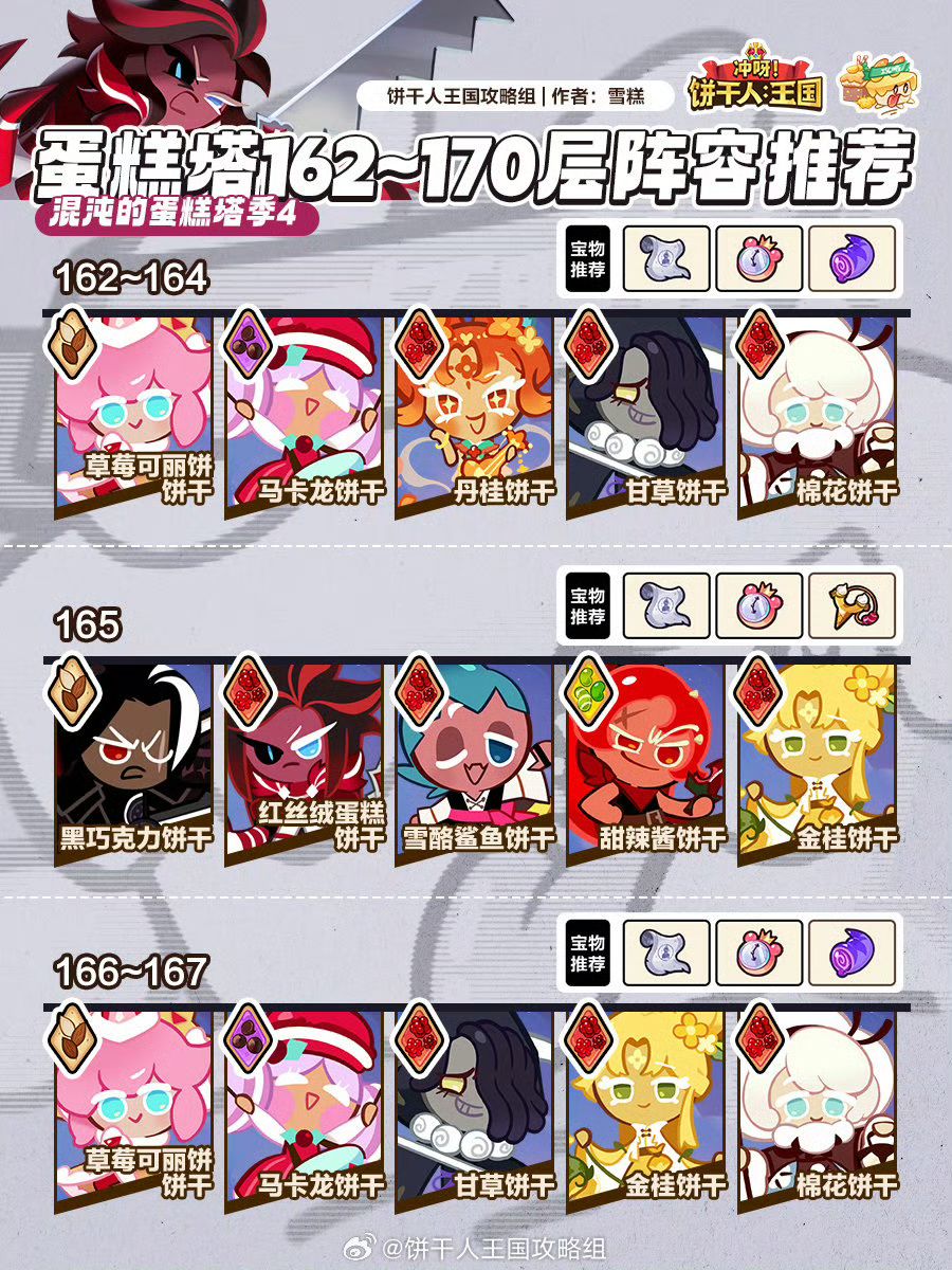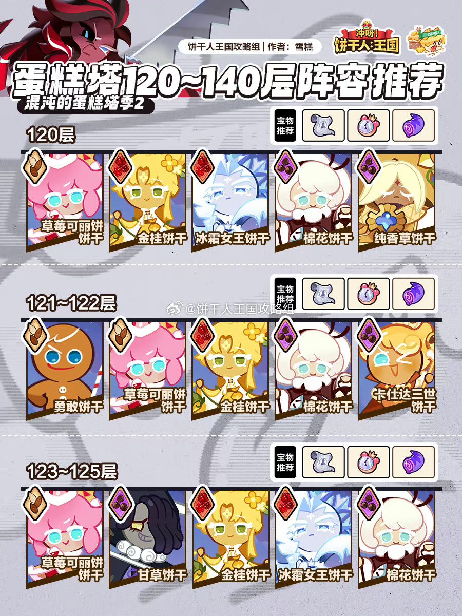 蛋糕塔第三季,第102~120层阵容推荐,注意:阵容不是固定,大家可以根据自己已有的饼干选择上场 作者:小实栗