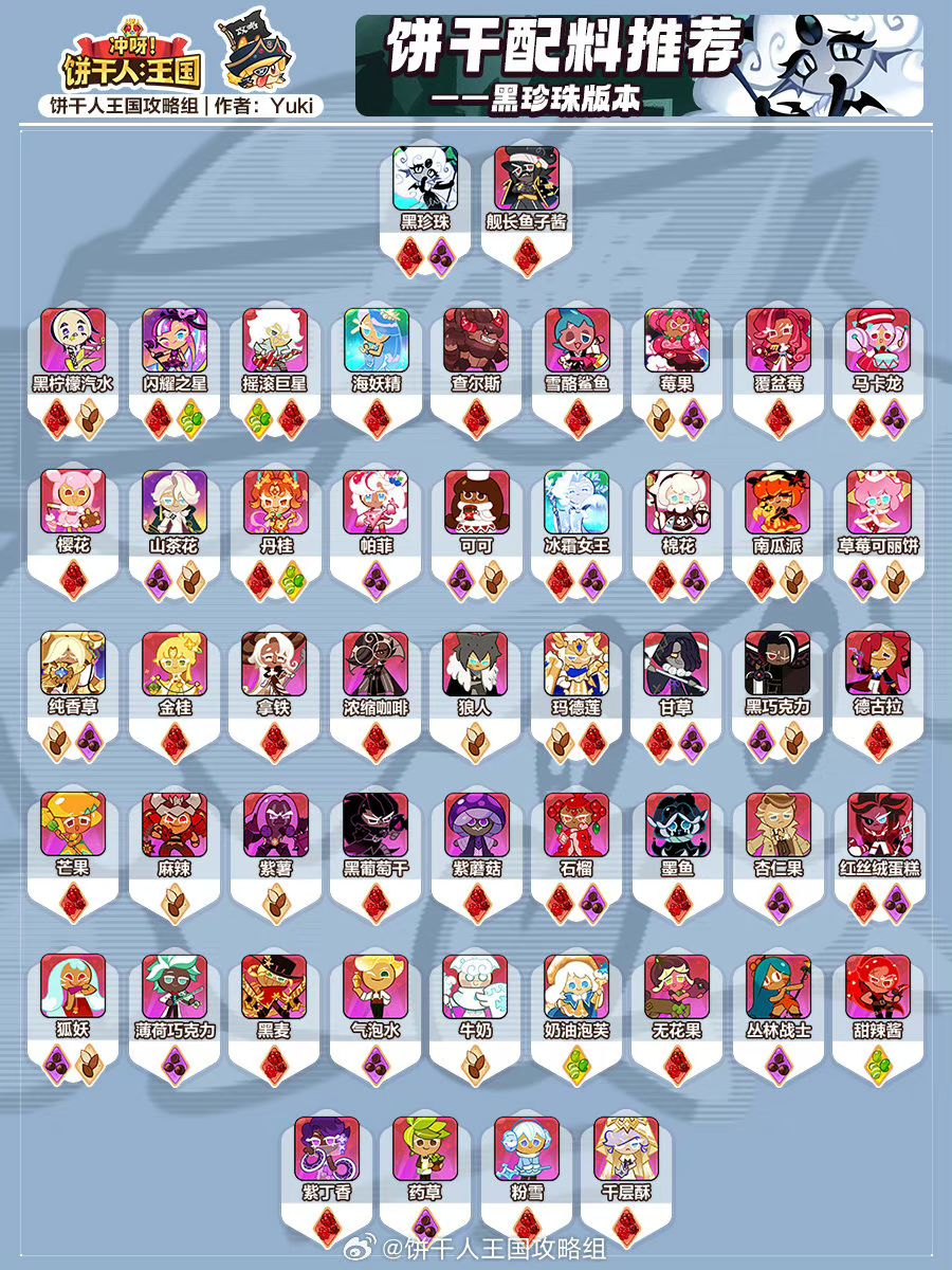 我的配料搭配思路: 可以试一下野莓 费南雪 黑糖/闪电 黑珍珠 和独角兽,这两套是圣梅前三十常见的阵容。在圣梅服这个阵容可以打赢任何旧队伍。 我自己用三星黑珍珠输出很高,当加强版浓缩咖啡用,也比浓缩咖啡硬。但是和浓缩咖啡一起不理想。 / 🔥这一套——全点增益!技能深海恐惧,攻击速度减20%,移动速度减20%,攻击力降17%。最多叠加一次。 #冲呀饼干人王国攻略 #黑珍珠饼干 #黑珍珠饼干配料