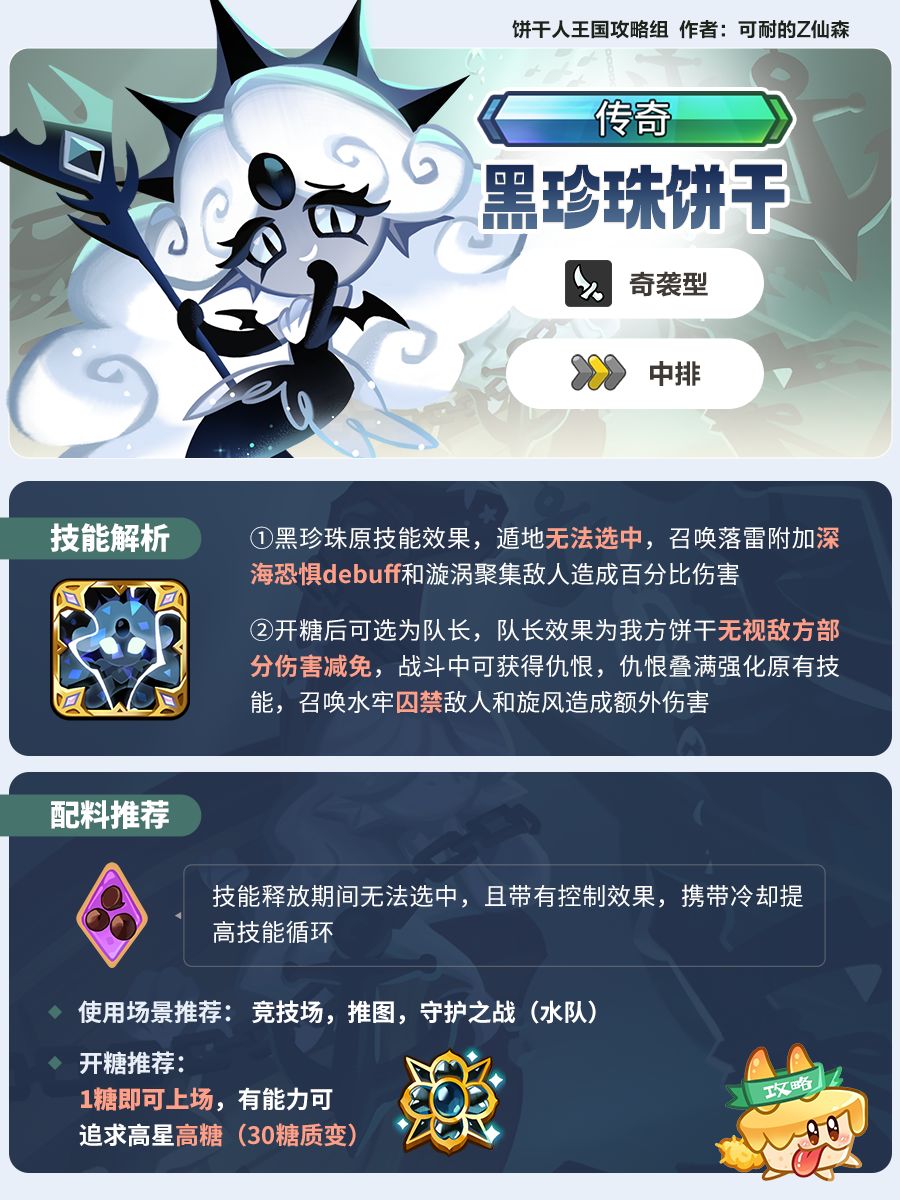 黑珍珠测评,目前来看主要依靠队长效果给全队提供增益,低糖强度聊胜于无,需要10糖~20糖会有明显优势,配料上优先冷却,其次减伤 作者@可耐的Z仙森