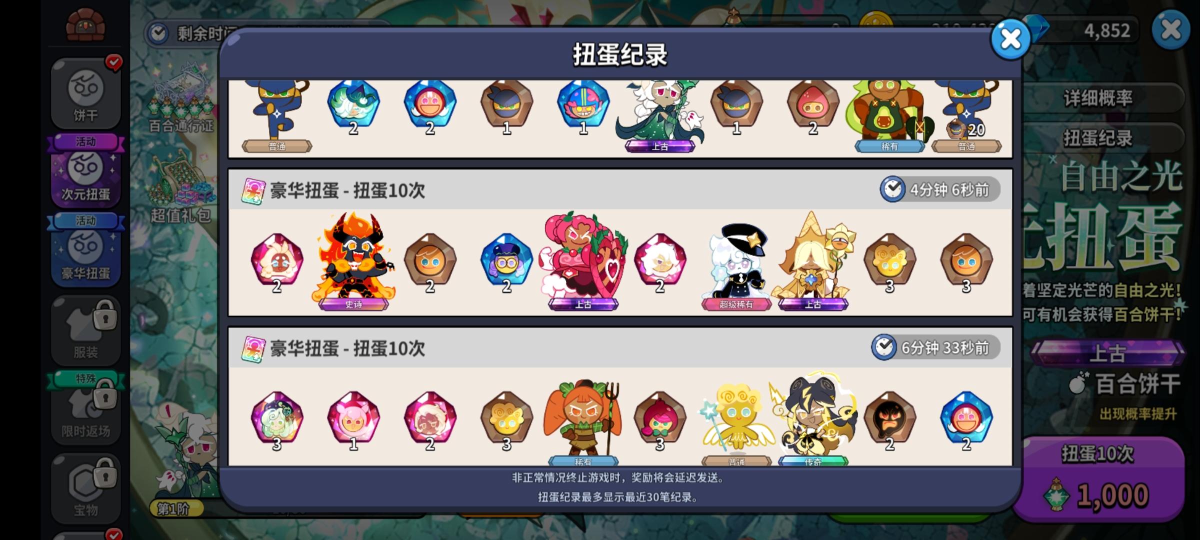 有一种自己在用阳寿抽卡的感觉,前30抽欧的可怕,但是感觉好像就雷神和百合比较好用,但是已经超级满意了!