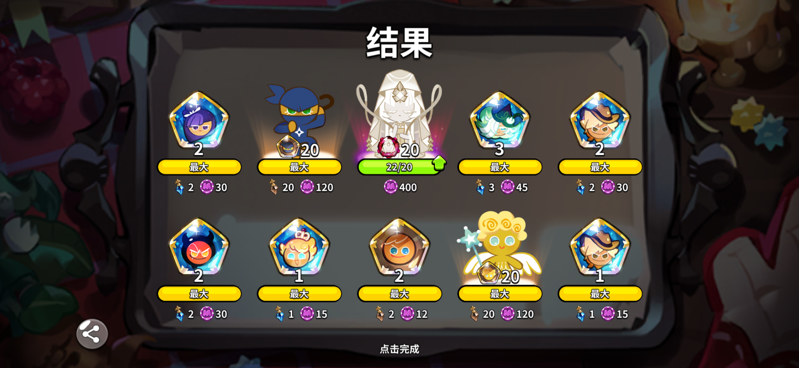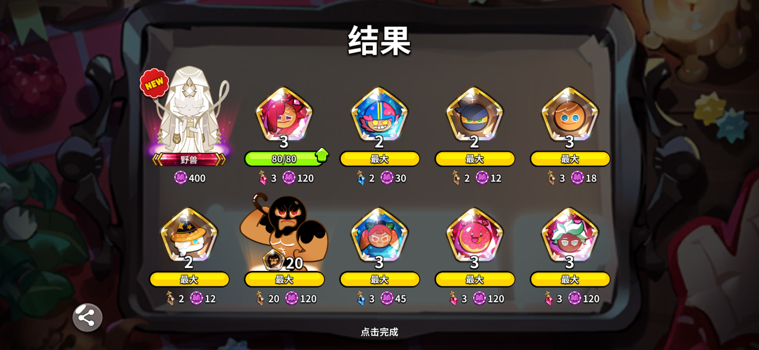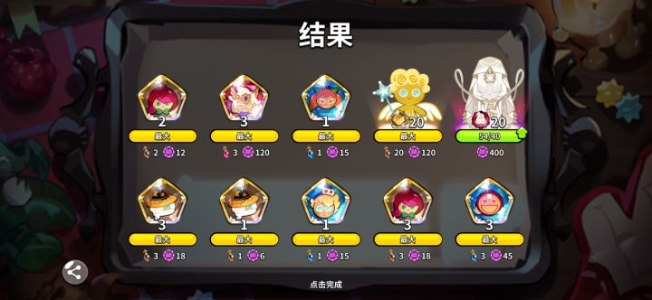 一个冰还有一个牡蛎,池子超一,感觉标准爆率变成250一个史诗了,算是中规中矩吧#冲呀饼干人王国 #浅评一下 #欧皇附体