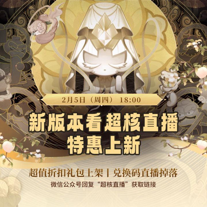 「新春超核特惠」直播专场即将开启,今晚18:00不见不散! 超值折扣、惊喜福利,通通备好,快来呼唤饼搭子速来围观!直播期间掉落全服兑换码、模具等福利,更有超值折扣礼包售卖,限时特价礼包上架开售~ ✦直播时间:2月5日 18:00 ✦直播入口:冲呀饼干人王国官方公众账号回复 “超核直播” 即可获取直播链接