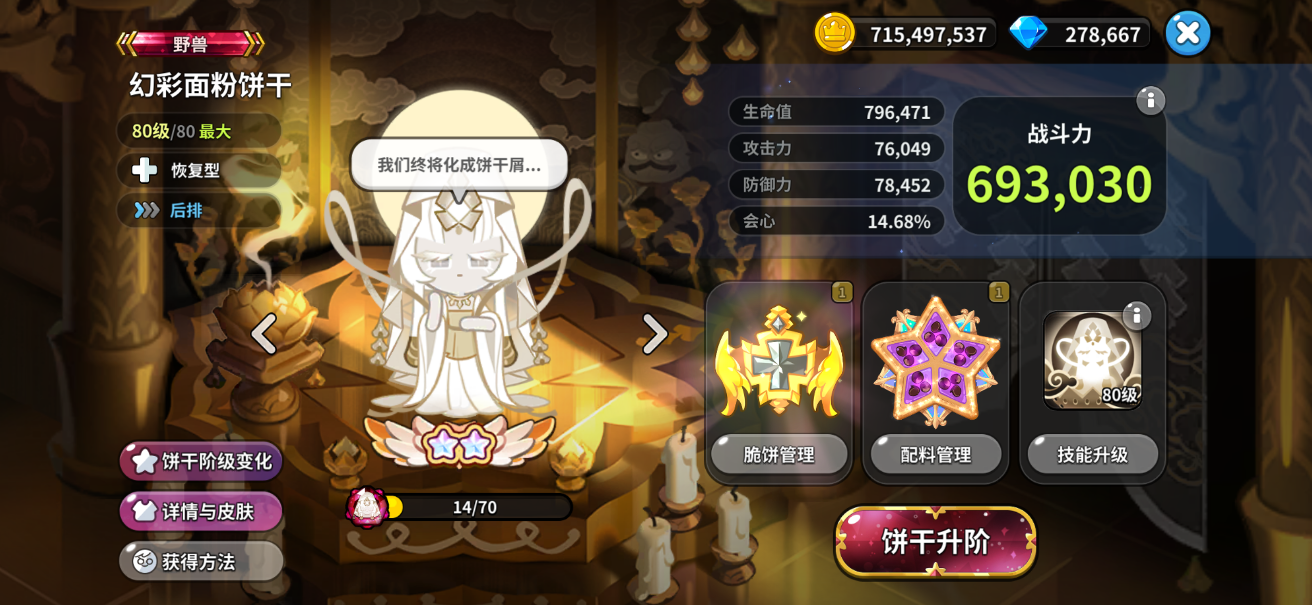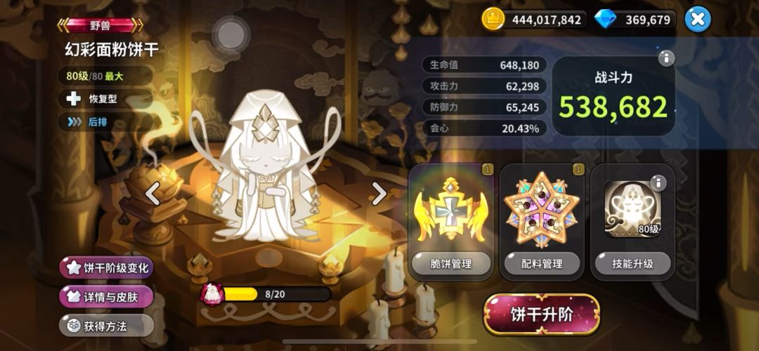 必须上冰锥雪怪和粉雪饼干,冰锥雪怪我好歹还把等级技能脆饼配件都升完了,粉雪资源不够也不想浪费在这就简单上了配件和脆饼,进去基本立马暴毙,我试了好几次不同饼干,boss两千万的血,我最多也就打五六百万,想伤害高饼干就容易暴毙,难道只能耗时间攒饼干碎片升星了吗?