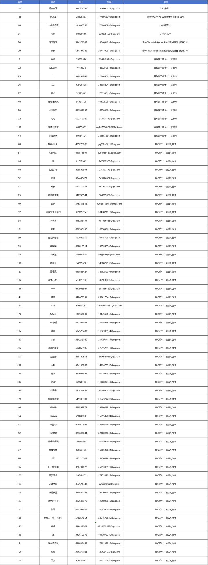 请获得实物奖励的饼干朋友在2024年3月3日24点前将【活动名称】【社区昵称】【自进入Tap社区至点击进入个人主页的录屏】【参与活动评论截图】【游戏主页截图(不可涂抹)】(缺一不可)以及收货人电话,姓名,邮编,详细地址发送至邮箱chesuant@qq.
