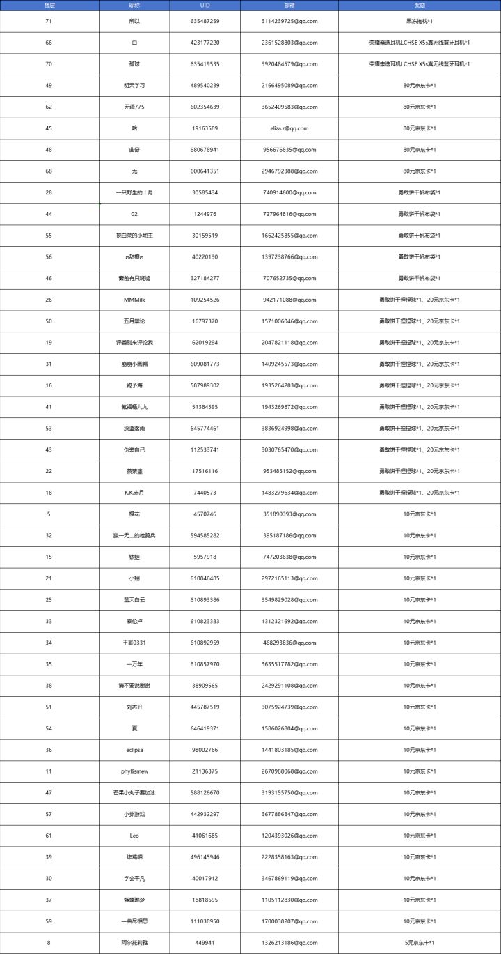 各位饼干朋友们,此次活动已经结束了,感谢大家的热情参与,以下是本次活动的获奖名单,因活动有效参与人数不足,奖励有部分变动。