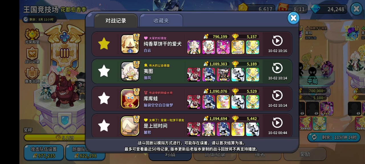 「只要饼干们齐心协力,就能拯救世界!」 ✦玩法介绍 守护之战为常驻玩法,饼干朋友们可组建最多3支队伍参与章节战斗,战斗期间还可以进行阵容切换,来灵活应对不同地图怪物!每次通过章节都可以获取分数,在每轮战斗结束后,还能获得战斗奖励与文物奖励! ✦活动时间: 9月27日00:00:00后长期开放 ✦奖励预览: 公会博物馆文物、限定服装、水晶、彩虹方块、限定头像