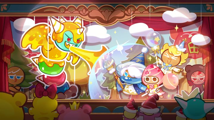 祝贺果冻派对圆满举办的庆典上,一出幕间剧吸引了大家的目光:来自饼干王国的三位伙伴,与化身巨龙的尖角虫展开挥洒饼干屑的一战! 「在这座栖居着率真伙伴的香甜王国中,请将童心尽情释放吧~」