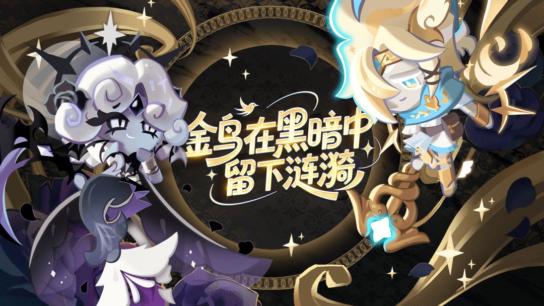 「在黑暗中只要有一丝光芒,便能找到回家的路。」 「我接下来说的话,说不定会成为新的开始。」 雪酪饼干“穿梭自如信使装”、黑珍珠饼干“黑暗深渊主宰者装”即将限时上架。使用彩虹方块参与传奇服装扭蛋,即有机会获得服装与对应限定头像。 此外,也为饼干朋友们准备了主题服装二选一礼包可供选购。饼干朋友们可自行选择通过使用彩虹方块前往传奇服装扭蛋或购买主题礼包解锁服装。 >>活动形式:“金鸟在黑暗中留下涟漪”限