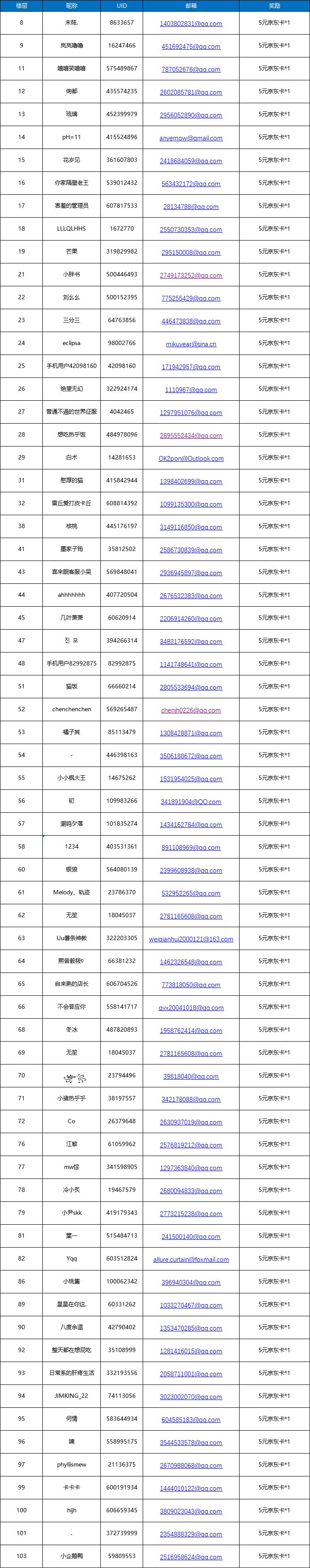 各位饼干朋友们,此次活动已经结束了,感谢大家的热情参与,以下是在本次活动中获得京东卡的幸运玩家,恭喜获奖的饼干朋友们~