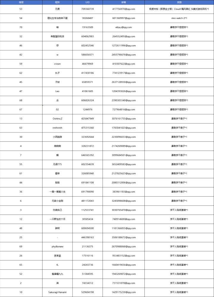 请饼干朋友在2024年2月11日24点将【活动名称】【社区昵称】【个人主页截图】【参与活动评论截图】(缺一不可)及收奖邮箱,实物奖励还需提供收货人电话,姓名,邮编,详细地址发送至邮箱chesuant@qq.com,邮件标题设置为【TapTap社区+个人社区昵称】逾期视为放弃。