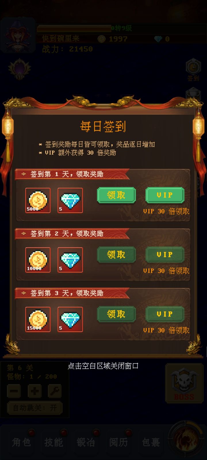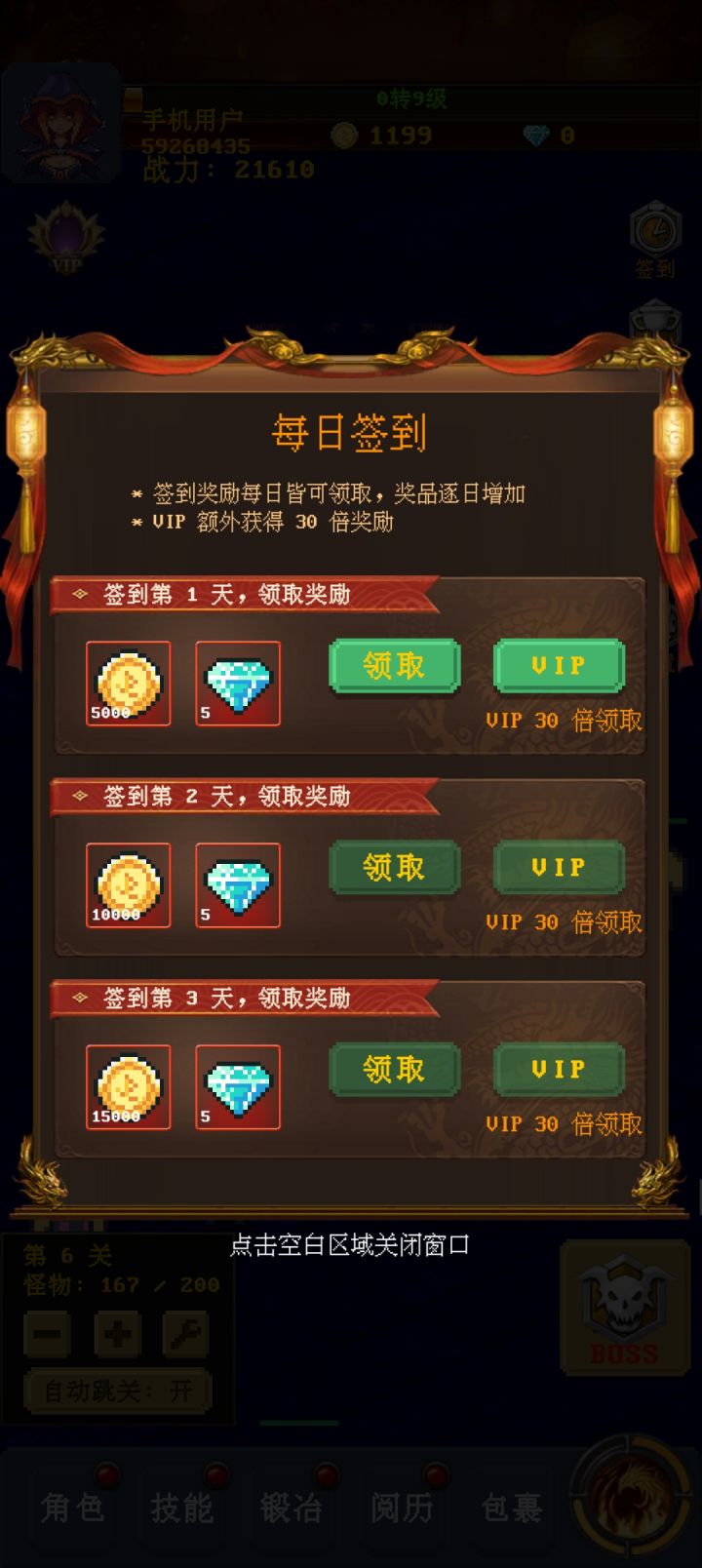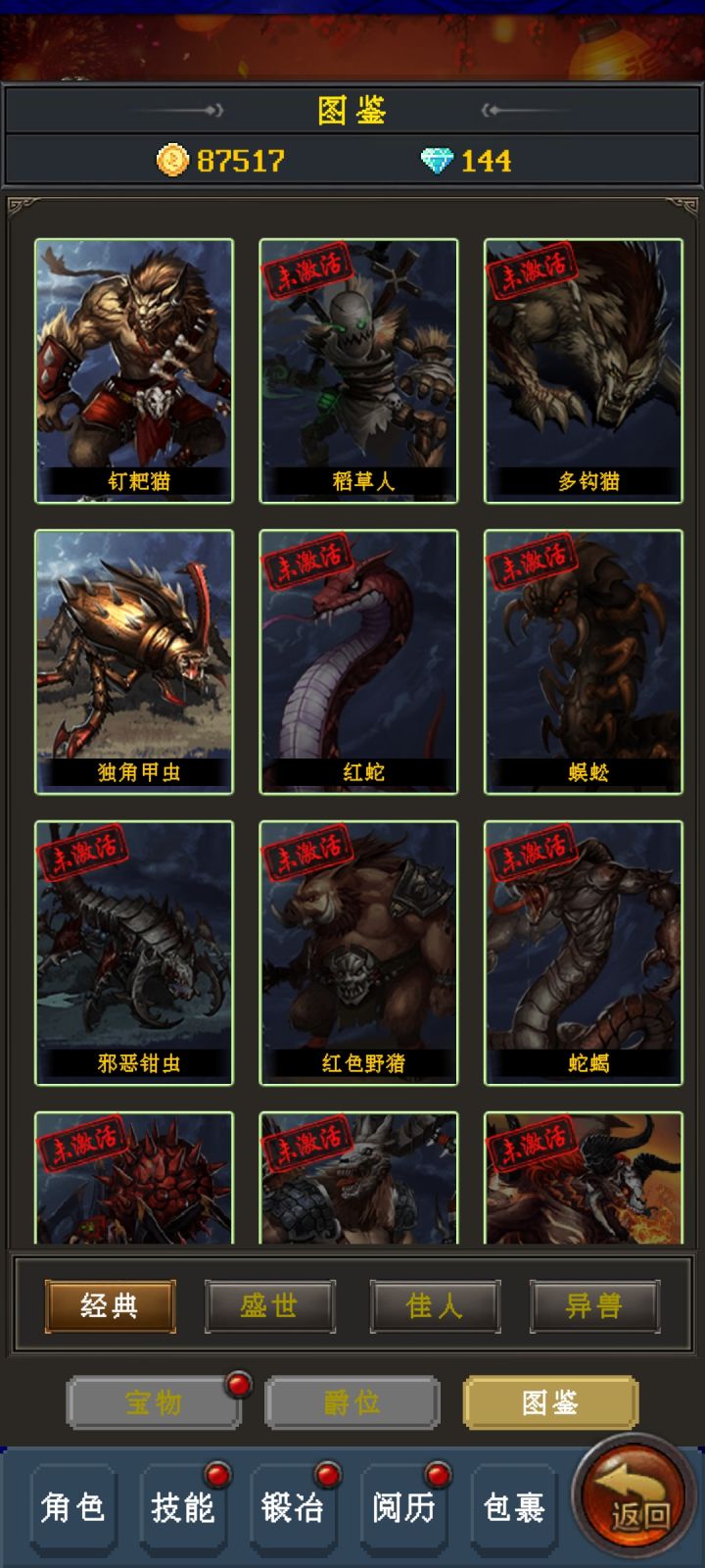 或者说,这就真的很符合《咸鱼之王》的广告:“一觉醒来,直接百级了,我的资源**那么多”,本作就是极为符合这种设计的,而且甚至没有所谓抽池子得什么红将角色一说,因为本作只有一个原角色挂机刷刷刷,就是第三个截图介绍那位,倒是有各种图鉴可以激活,不过好像也没有品阶。