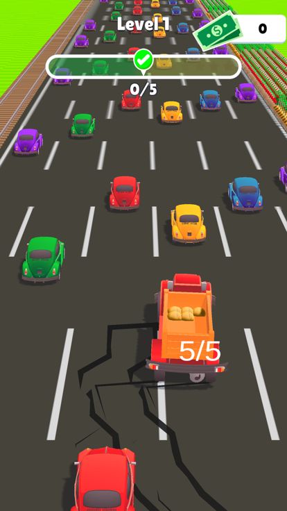 Swerve left side to load crops to train. Watch out for traffic and obstacles! If you crash, you may drop your crops.