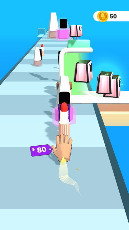 You can collect and stack whatever you want! Let's try to collect all beauty and make-up materials on the platform and sell them to earn money more.