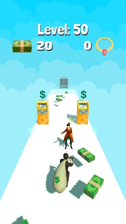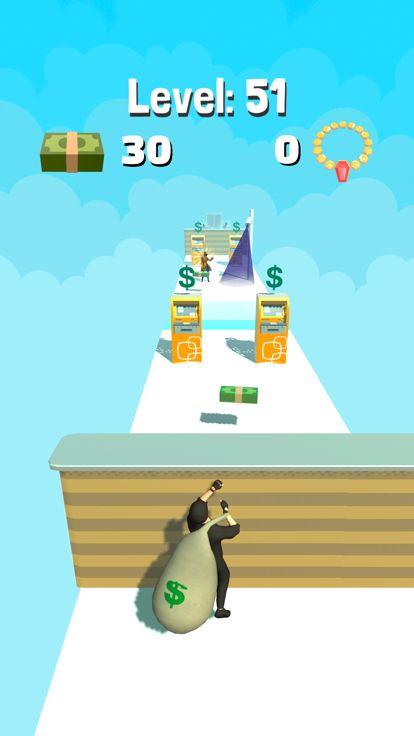 Feel free and steal all. If your money bag is too full, you may not be able to overcome the obstacles, be careful and use the atm. Enjoy being rich!