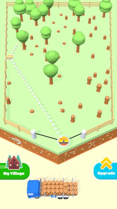 Cut the trees with a jumping saw blade and upgrade your city!