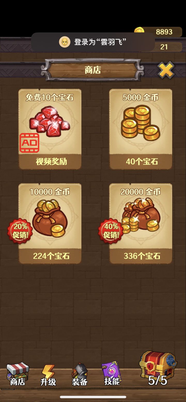 什么玩意啊 宝石换金币 明显错误 技能升4级后 全部要看视频 一个合成游戏 每个装备都受限个数 升到6级后 基本靠肝 才能升级。一点可玩性都没有 为啥还能推荐