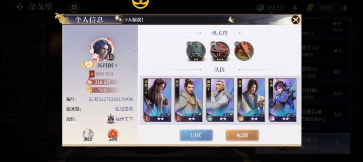 两个服务器,大概活跃人数两百➕,目前还有新人入坑。没啥攻略,氪佬前期拼的是谁突破石多,后期就看谁先满豪杰阵容。(阴阳阵容还没见过谁氪满过,焱妃是招不到的,只出现过一次活动)。据说榜一氪的比二三加起来还多(看机关兽就知道了)白嫖党和微氪党、每个阵营养一个就像图四我的阵容差不多。
