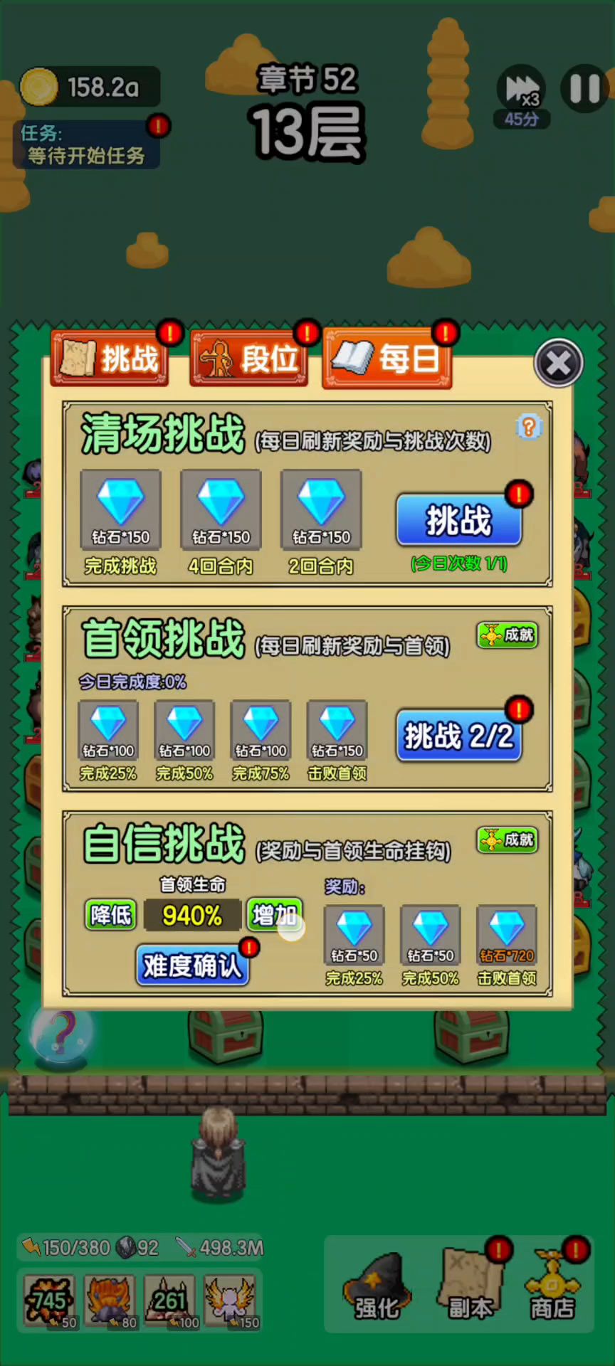 难度1000% 的boss 血量150M,血量越多 钻石奖励也多哈😀😀😀#自信挑战副本#每日副本