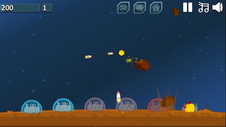 通过点击屏幕向陨石发出导弹摧毁掉你所看到的陨石,保护地面上的基地不受到任何伤害。