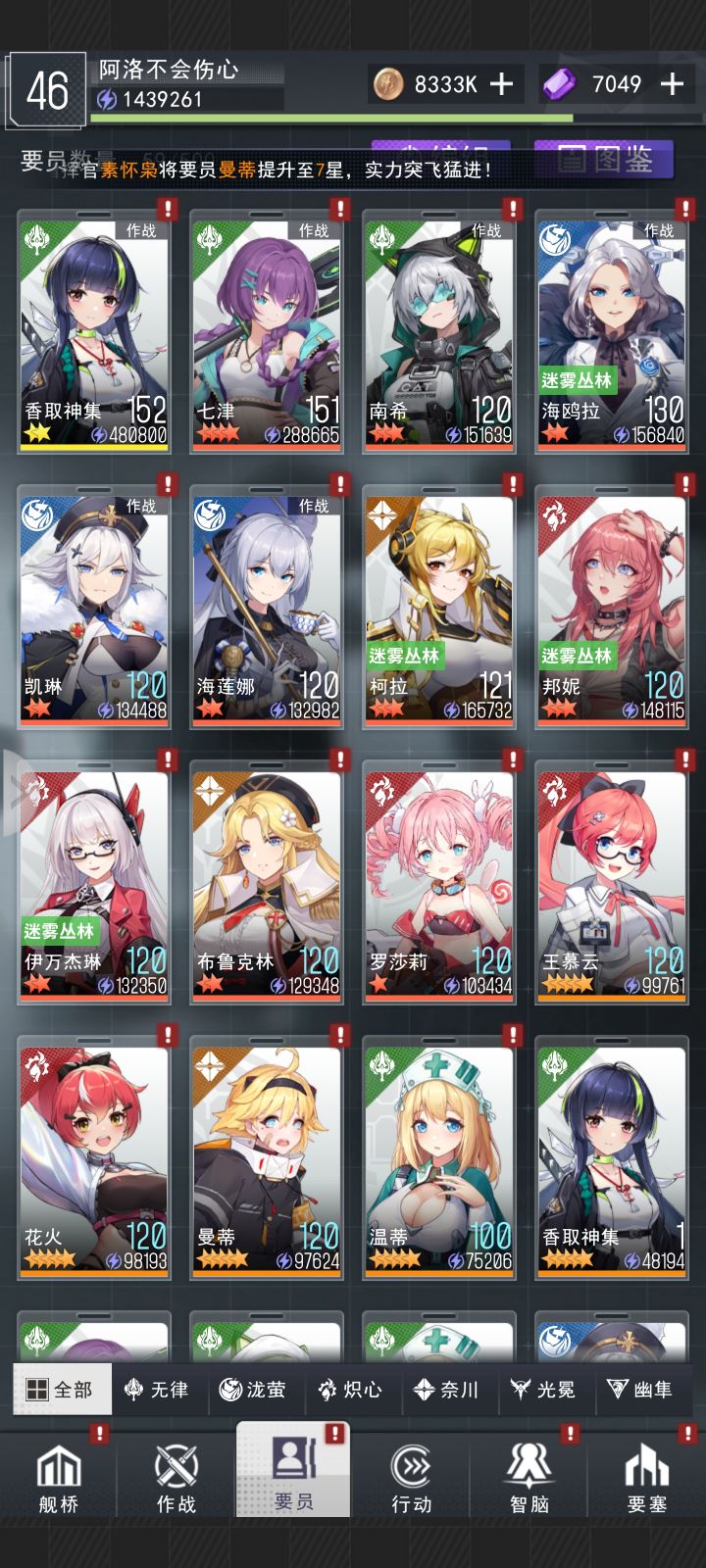 (阵容因为一些问题 客服还没有给出回答 就后面再讲) 首先是关于抽卡的 大家未登录超过30天的 要注意自己抽卡的时候出心仪要员 会直接 导致心愿的次数归零 这点要记清楚 尽量把心仪弄成几个难出的核心 比如 凯琳 诺拉 就跟下面的图片一样心愿每月只有两次 也要 也要注意 接下来是关于要塞的 第五个就是金币了 接下来再说一下同步中心 同步中心就是以你上阵的六个人物中等级最低的为平均等级 接下来 就