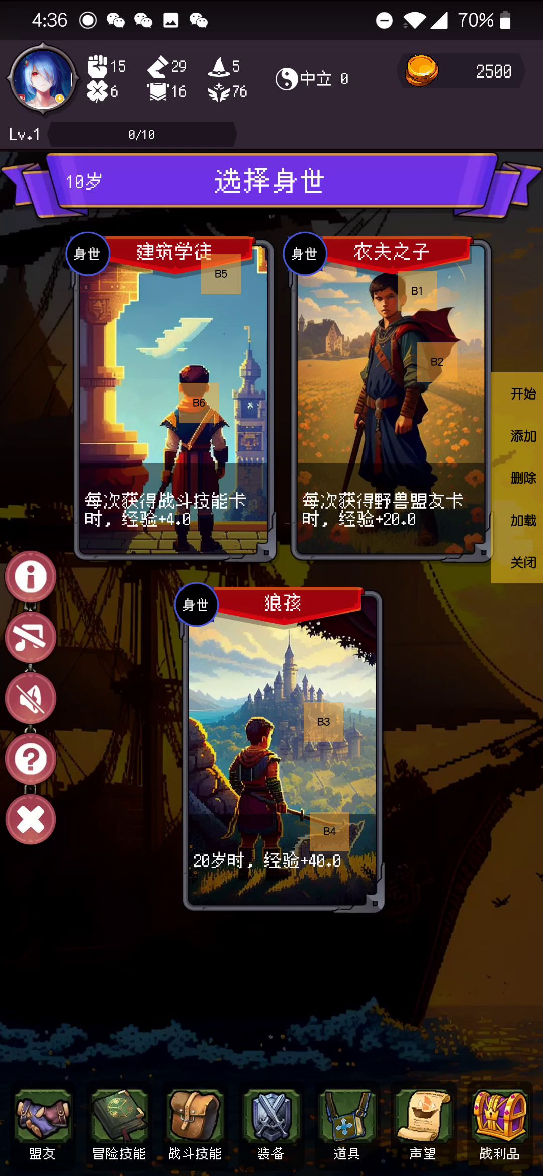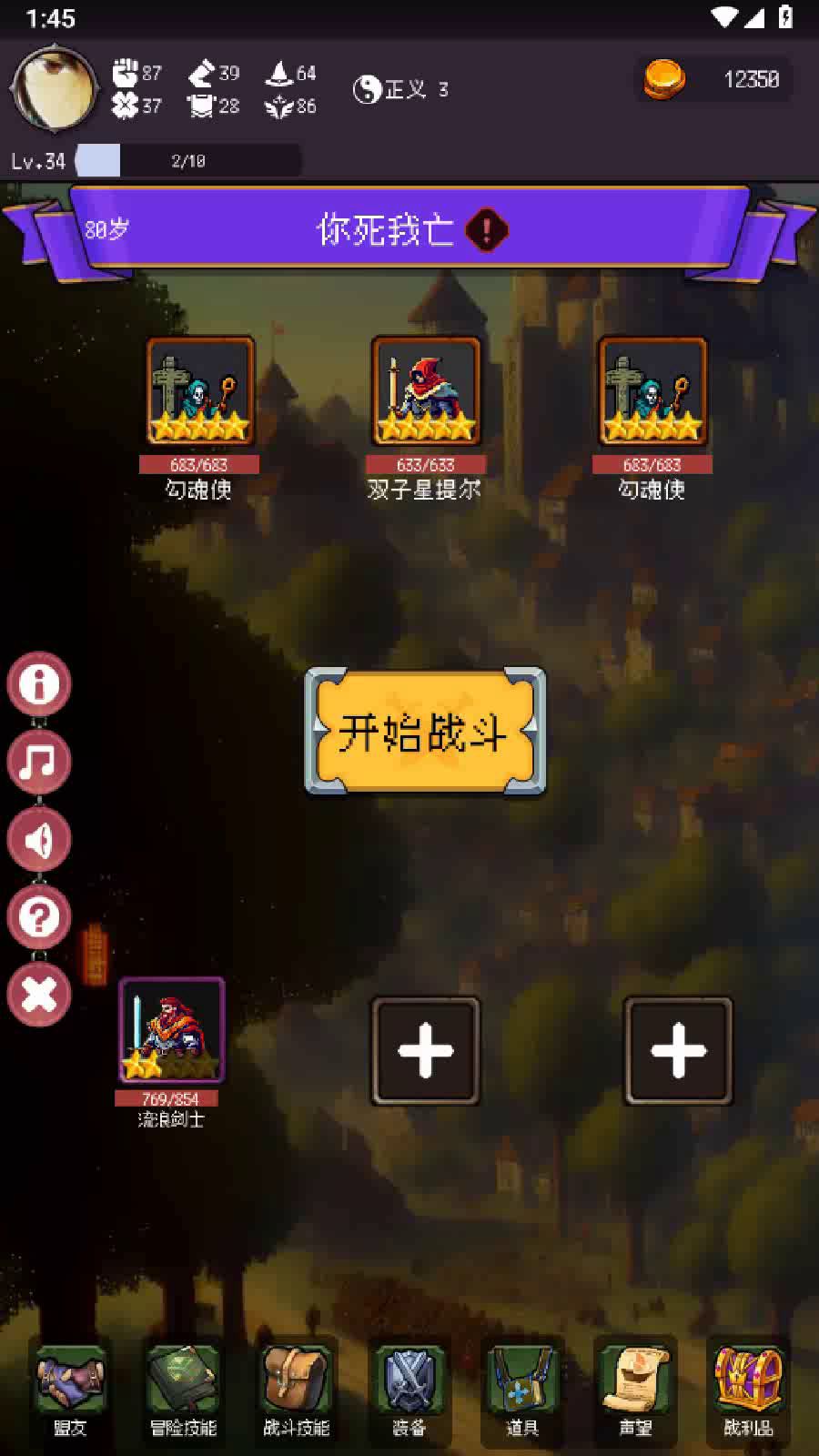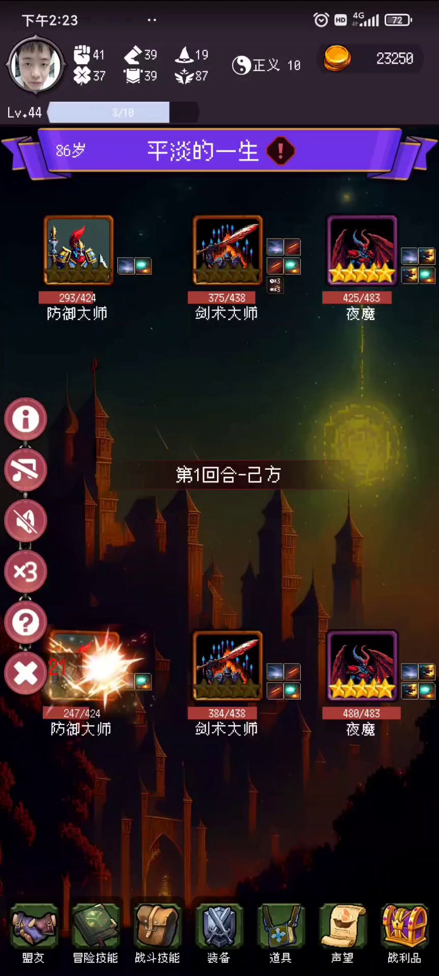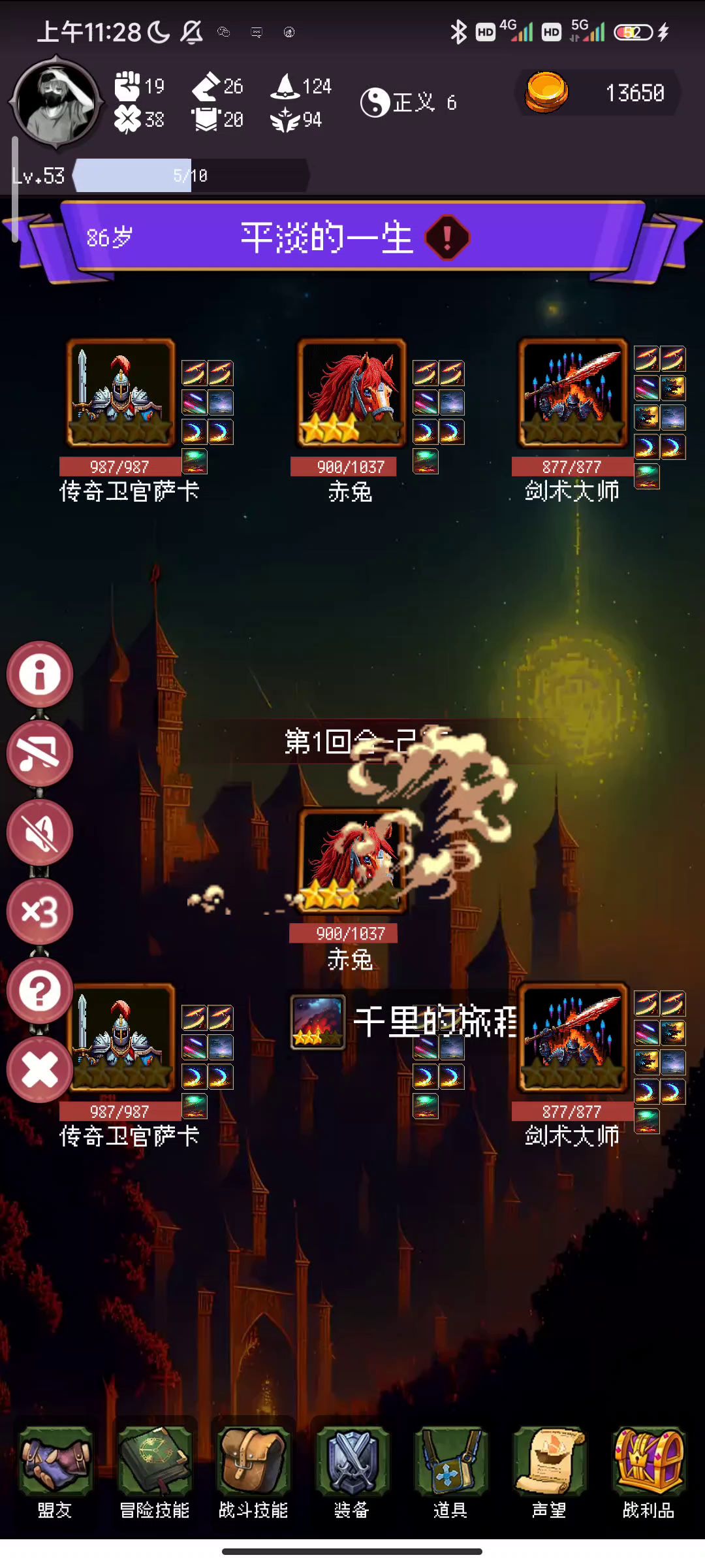 现在流浪剑士技能有bug,在第一回合触发后不会多打2次普通攻击,另外骤雨突击技能说明不符,不会随机打人。不过单通已经够了。前期依然是大剑教程骑术教程叠攻击速度,后期换骤雨突击和雷暴审判,打小怪换圣盾,打boss换奇迹光环或者斩杀光环。 流浪剑士-王国传说出,骤雨突击-黑白双子结局出,雷暴审判-商店3000奖章,奇迹光环-71-79试炼出。