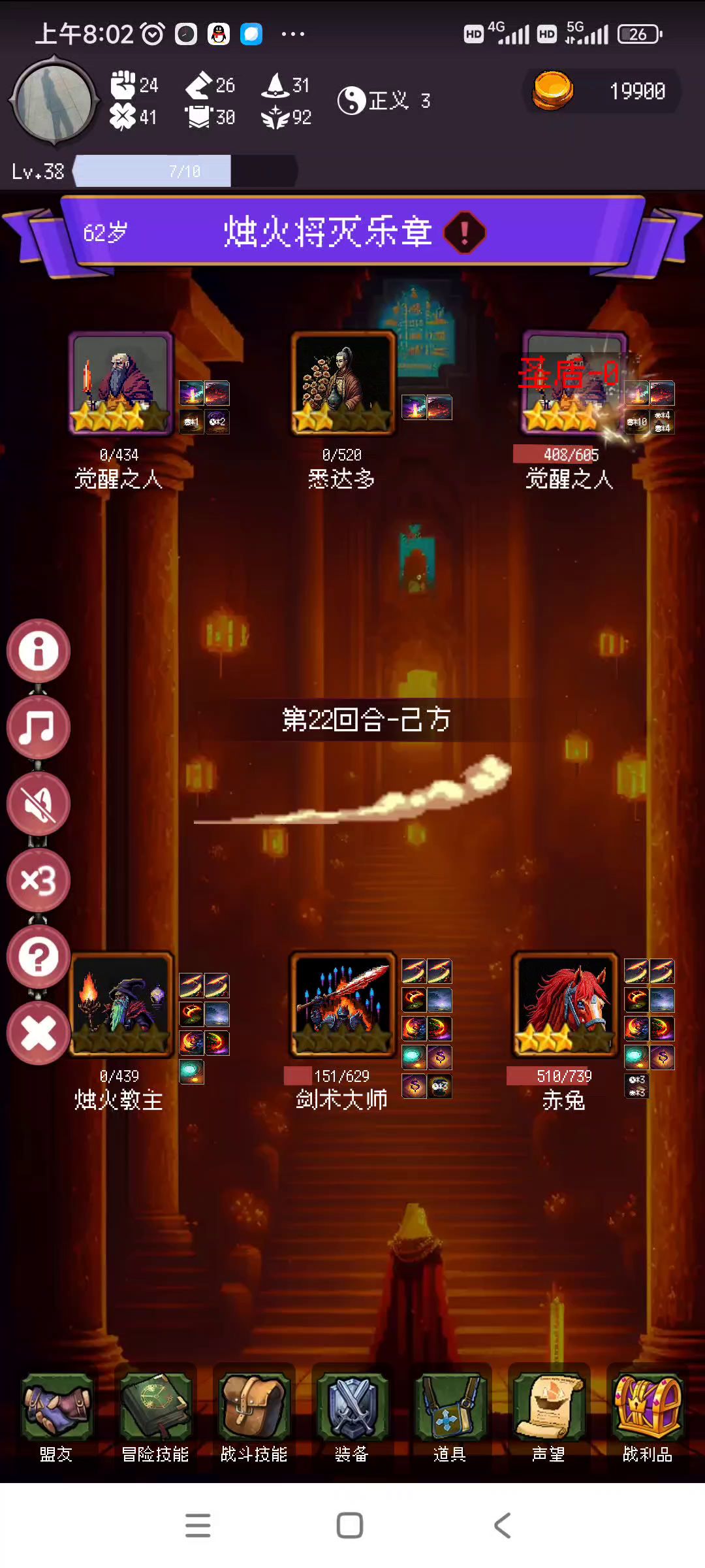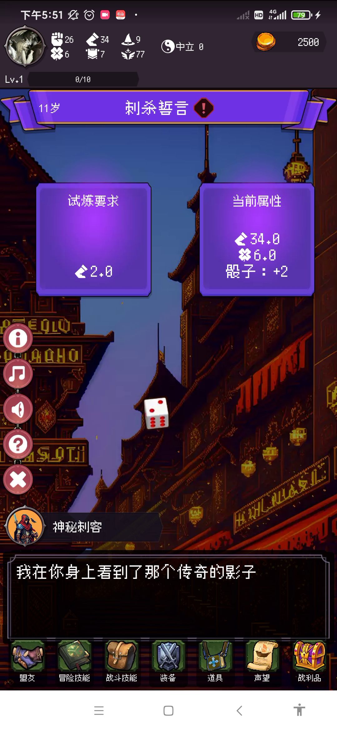 完成结局:残缺结局 等级:18 杀死敌人:48 盟友阵亡:17 最高声望:巫师会Lv.2 正邪状态:正义 你是一名铁匠之子,有着美好的未来 你天性谨慎,这种性格将伴随你多年 占卜师曾经预言过你的命运,你未来将罪无可赦 11岁时,你完成了沙漠之旅 12岁时,一群志同道合的音乐爱好者加入了你的旅行行列 13岁时,你见到了一个奇特的黑羽毛,找到占卜师了解了情况后,做出了错误的选择 14岁时,你击败了想要抢劫你的旅行经费的匪徒 15岁时,你战胜了你的人生宿敌——学校的劲敌,你的人生迎来崭新的一页 16岁时,你遇到了一名绝症旅行者,你邀请他一同旅行,你们相谈甚欢 17岁时,你在铁森林之旅的好运使你没有死掉 18岁时,为了更换盟友,你去了一趟恶魔雇佣兵营地 19岁时,你成功地给学校里的暗恋对象送了礼物 20岁时,你战胜了你的人生宿敌——一生劲敌,你的人生迎来崭新的一页 21岁时,你在烈日峰找到了黑羽毛 22岁时,你接受了贵族的邀约,献上了一场美妙的演出 23岁时,你从装备祭坛里得到了你想要的结果 24岁时,你成功保护了农夫 25岁时,你战胜了你的人生宿敌——追赶者,你的人生迎来崭新的一页 26岁时,你在星之海找到了黑羽毛 27岁时,你完成了雪山之旅 28岁时,你在旷野的闪电中找到了强大的魔法卷轴 29岁时,你成功回答了女神的问题,但仍没有得到她的青睐 30岁时,你战胜了你的人生宿敌——律法审判长,你的人生迎来崭新的一页 31岁时,一名不死者加入了你的旅行行列 32岁时,你在人生的三岔路口中毅然前行,无视艰险 33岁时,你在黑暗墓室清理了鬼怪 34岁时,你答应了贵族领主的邀约,完成了一场旅行修炼 35岁时,你战胜了你的人生宿敌——邪恶导师,你的人生迎来崭新的一页 36岁时,你击败了葬灵氏族 37岁时,你在驯服狼群时杀掉了狼群 38岁时,你在混乱神龛里有了神奇的发现 39岁时,你在废弃的藏书馆里有惊人的发现 40岁时,你战胜了你的人生宿敌——恶魔精英,你的人生迎来崭新的一页 41岁时,你发现蛮族入侵,拉响了镇中心的警报 42岁时,在受到诅咒亡灵的光环的影响下,你遭遇大败 43岁时,你帮助剑术大师取得了记忆的胜利 44岁时,你进入了一座异教避难所养伤 45岁时,勾魂使前来终结你的生命,你战胜了勾魂使,自己前往了死者