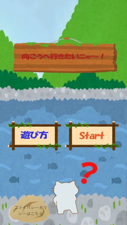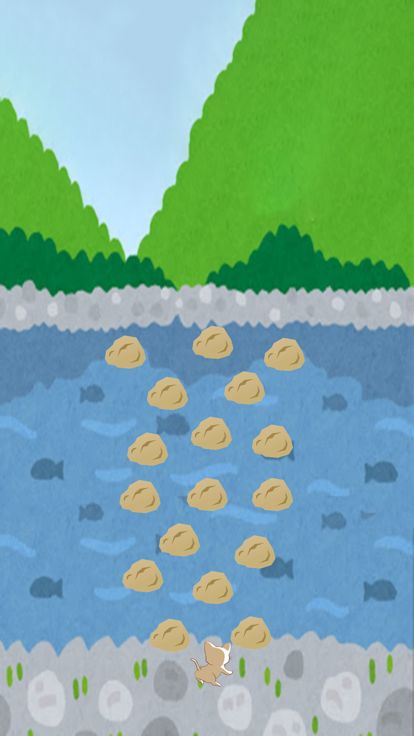 飛び石をタップして。キャラクターを飛び石に乗せて向こう岸まで渡っていく簡単ゲーム!