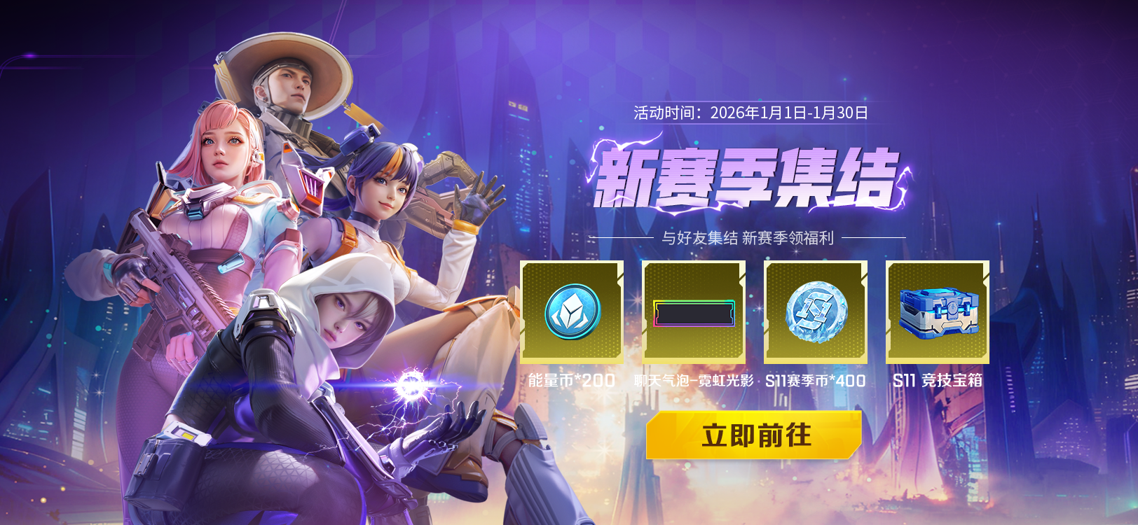 高能英雄们,S10赛季即将迎来巅峰对决!为了让大家在赛季末战个痛快,同时为S11新征程储备军需,我们准备了三大重磅福利活动。高级装备登录领、双倍上分、新赛季豪礼,统统安排!👇 活动详情一览 👇 🛡️ 活动一:登录即领,高级战备助阵!满配入场,开局即巅峰!想要体验满配战斗的爽感?机会来了!2026年1月1日起至S10赛季结束,「风暴突袭模式」助力升级。活动期间,玩家每日登录游戏即可直接领