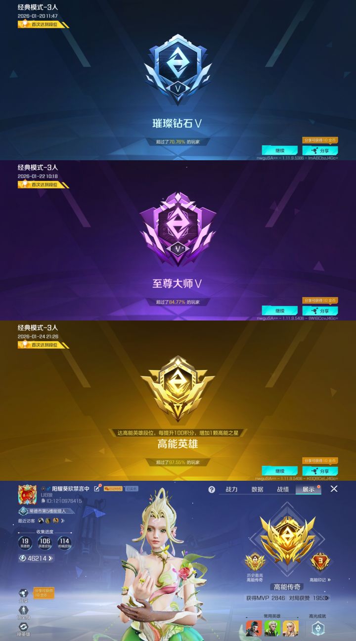 断断续续打了五天,总算摸到高能传奇了,也算完成小目标。
