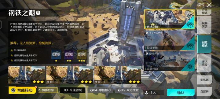 目前这个pve也没有开多人组队,平常只有朋友在的时候打开高能玩一会,平常自己一个人的时候也就上来登录一下 ,自从出了钢铁之潮模式一个人的时候也能打打。刚开始的难度还好到第三章,不仅出怪口多的吓人,怪物血量和伤害还高,感觉真的不像一个人能打的。前面两章还能凹一下全满星,到第三章不要说满星了通关都很困难,这时候想升级下核心获取途径少刷一关只给三个箱子不说爆率也是真的低,旁边的扭蛋机也一样基本只有白色品
