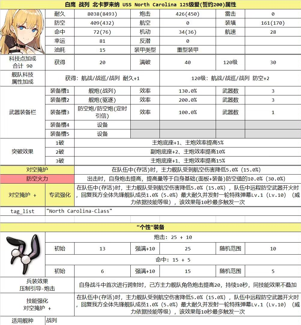 老规矩,这次更新依旧多加了两个专武,北卡可能有点说法。下面看下b站井号5467的简评,其余专武可见往期榜单,希望能对大伙有所帮助[表情_开心] 1,北卡罗来纳主线榜,预计奶妈类,A级起步。目前主线环境飞机不少(尤其13和15图,几乎能稳定触发),10+s一次的先锋群奶和一般的弹幕。在奶战里面,比亚利桑那更强。但不太看好能冲击目前顶级奶航(有待未来实测,如果实测效果好,会进一步提档。)大世界榜C+级